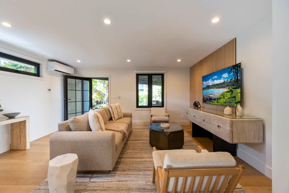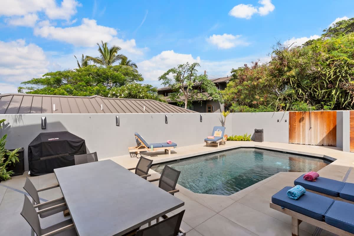 Situated on a shared property, this inviting villa offers air conditioning in each bedroom, along with full ensuite bathrooms and private entrances that provide direct access to the shared pool. Designed for comfort and convenience, Ohana Hale is an ideal retreat for guests seeking a relaxed island stay in a beautiful, walkable location.